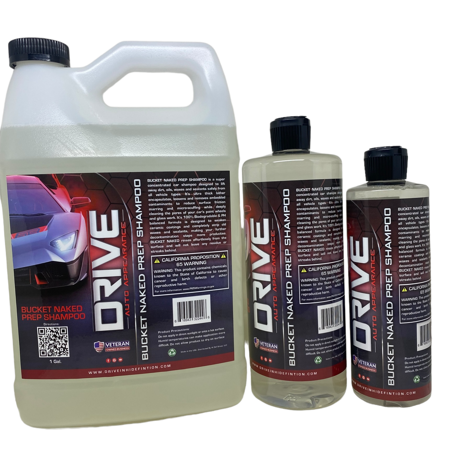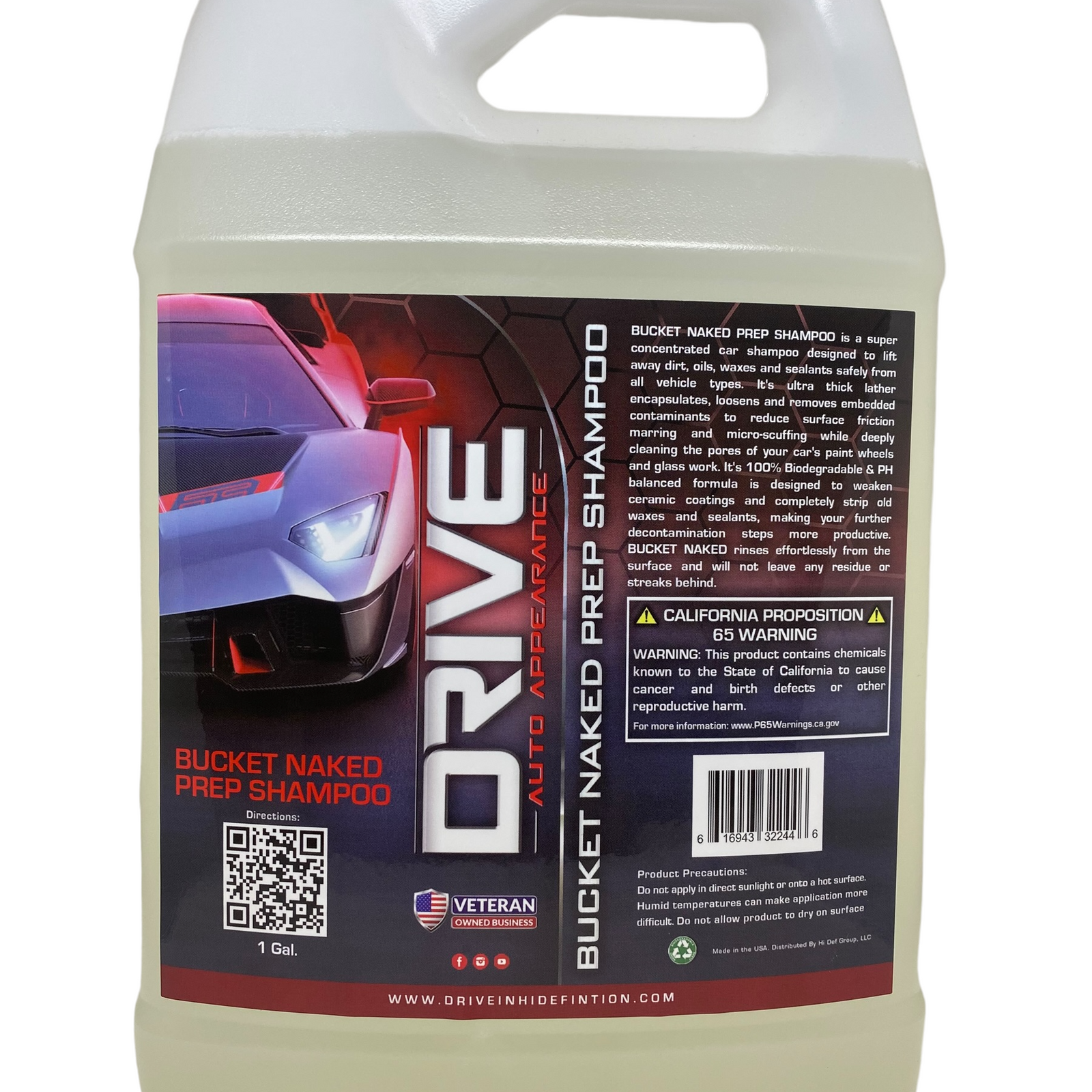 Bucket Naked Prep Wash is a pH balanced hyper concentrated car wash soap designed to remove waxes, sealants and clean heavily soiled surfaces. It's ultra thick lather encapsulates, loosens and removes embedded contaminants to reduce surface friction marring and micro-scuffing while deeply cleaning the pores of your car's paint wheels and glass work. This powerful cleaner is 100% biodegradable and works great on wheels, rinsing clean and drying streak free. Get your car looking and feeling brand new without the harsh chemicals.