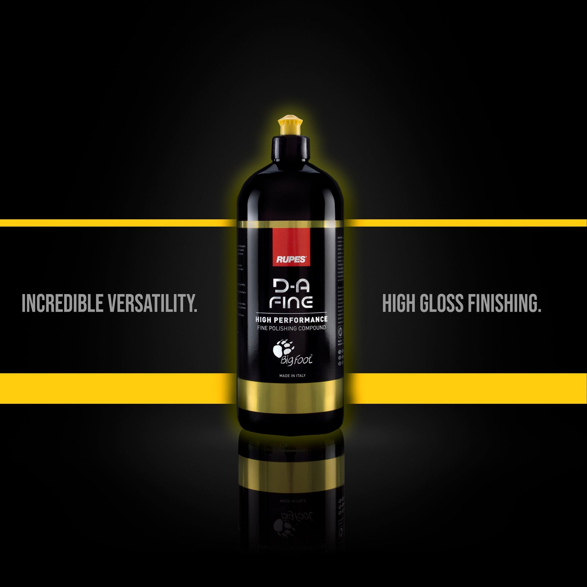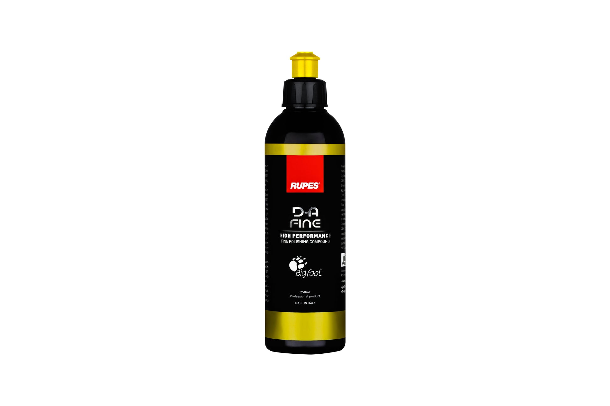 D-A FINE combines the power to quickly polish away moderate paint defects with the finesse essential to producing a stunning haze-free finish on automotive paint, gelcoat, and similar surfaces. This unique fusion of performance is the result of RUPES extensive development and testing process combined with our technical expertise as a world leader in surface correction. BigFoot D-A Fine maximizes the finishing ability of all random or gear-driven orbital polishers when used with BigFoot D-A fine foam, wool, and microfiber pads. Use this amazing fine polishing compound by itself to remove moderate defects and create gloss on softer finishes or as a second step to further refine a surface corrected with BigFoot D-A Coarse Polishing Compound.